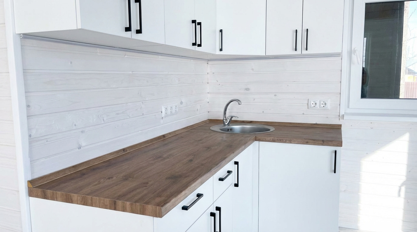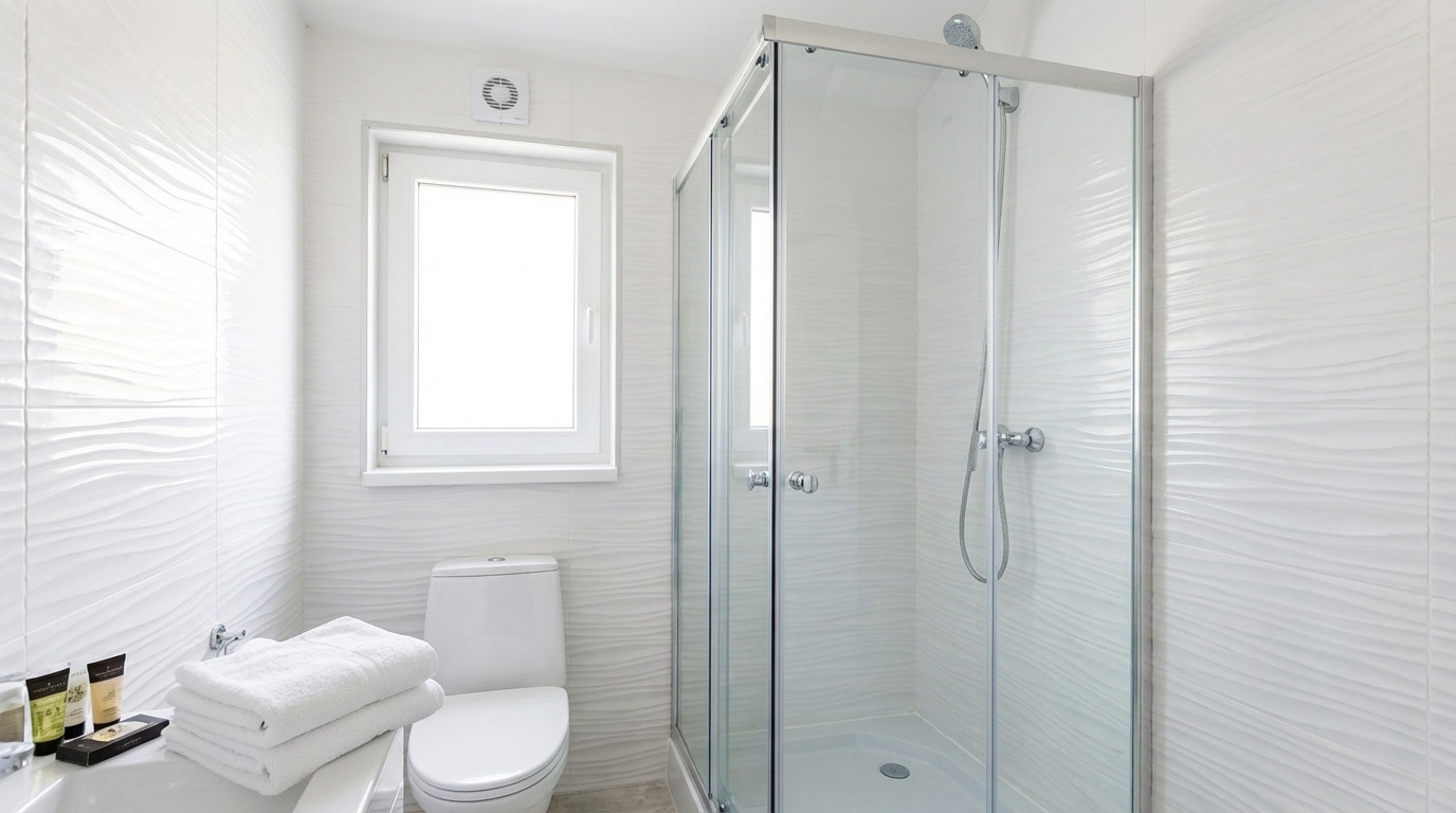 | Finition SdB | Panneaux bois naturel & Carrelage |