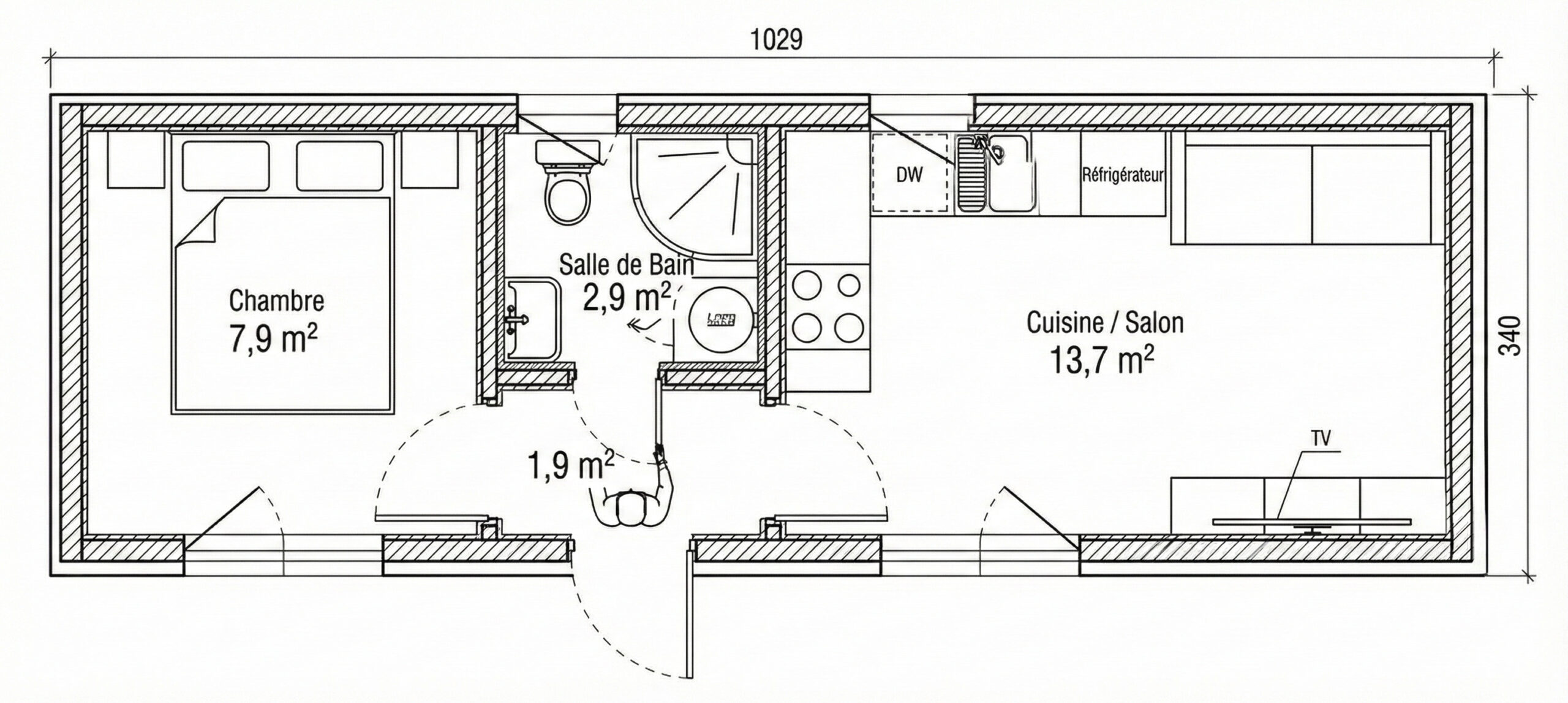 | Dimensions extérieures | 10.29 x 3.4 x 3.3 m (L x l x H) |